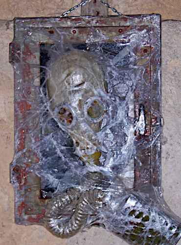• Die Gasmaske steht für die Gefahren durch chemische Waffen und die giftigen Umweltbedingungen in Konfliktzonen.